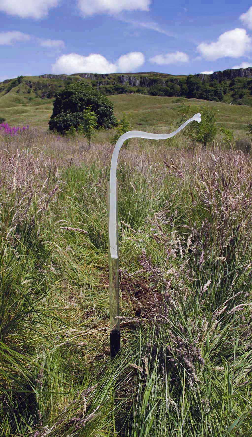 At the time of my first site visit, the Trust were reintroducing 500 birch trees as part of their reforestation initiative. This got me thinking about the dichotomy of alien vs. native, naturalisation, and why some species’ «invasiveness» is considered a redeemable trait if they are aesthetically pleasing enough  - a native weed is most likely to be rooted out in favour of a non-native plant etc. As a result, I decided to "reintroduce" a family of algae that had not been seen in this part of Scotland for millions of years. The birch sapling stalks that were dotted across the estate looked a lot like the stipes (the stalks of kelp) that I had collected from the beaches in Arbroath (on the east coast of Scotland). These were cast in a translucent resin to emphasise their remnant-like status and the  fragile, yet  synthetic quality of  (re)cultivation.